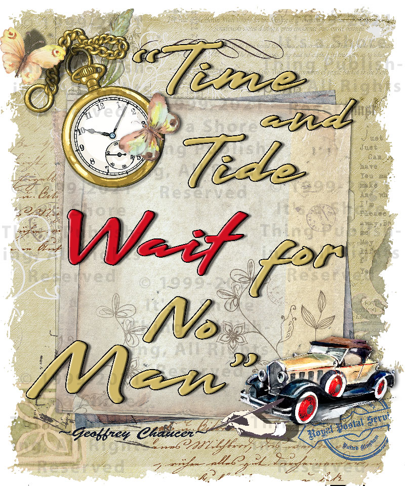 Print-On-Demand Merchandise Design: "Time and Tide Wait for No Man"