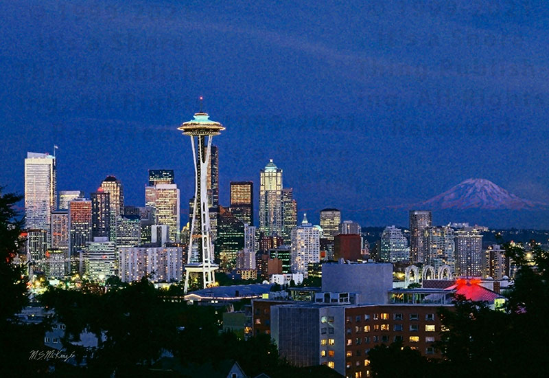 Print-On-Demand Merchandise Design: "Seattle and Mt. Rainier"