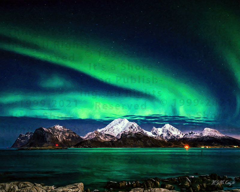 Print-On-Demand Merchandise Design: "Northern Lights Over Norway"